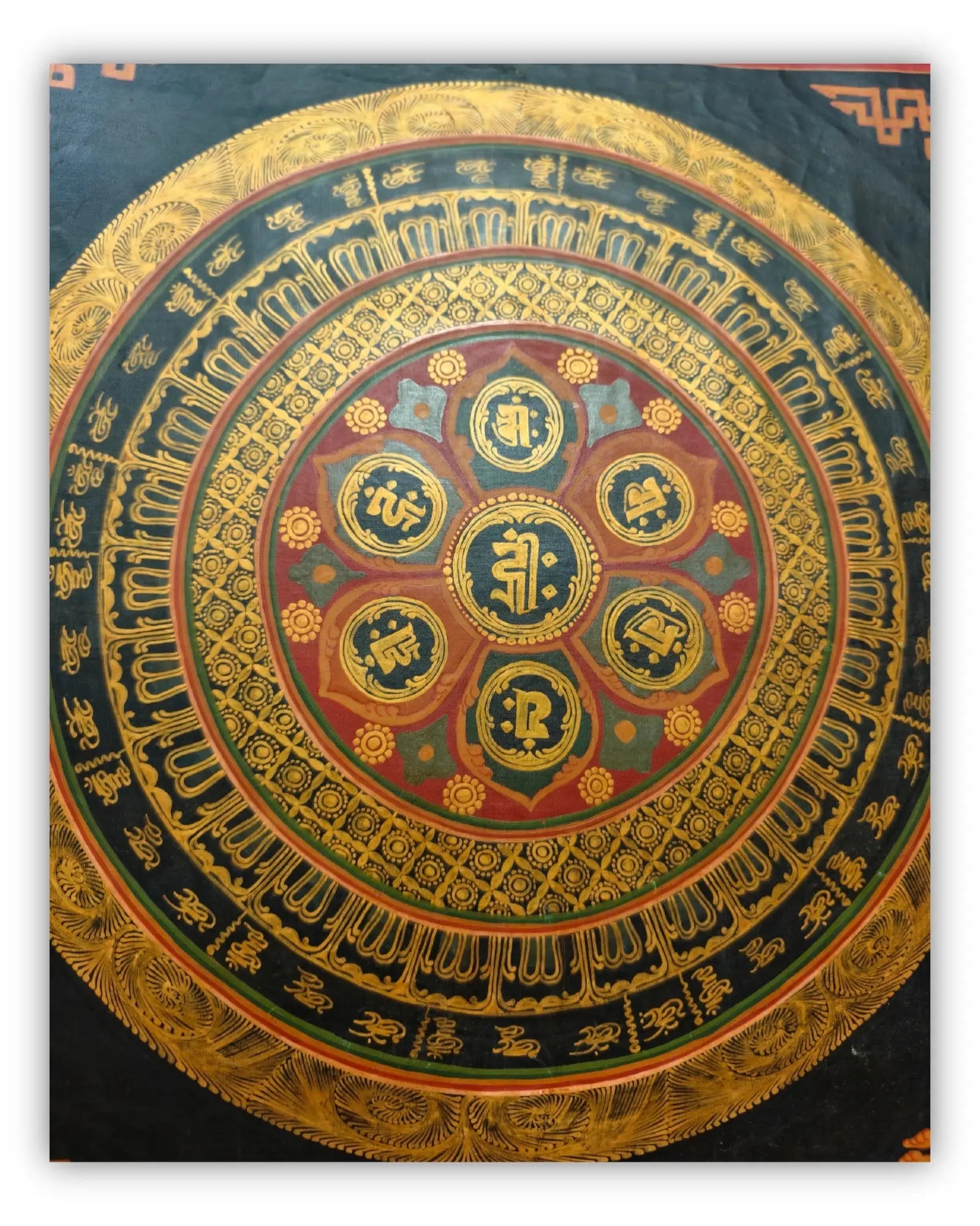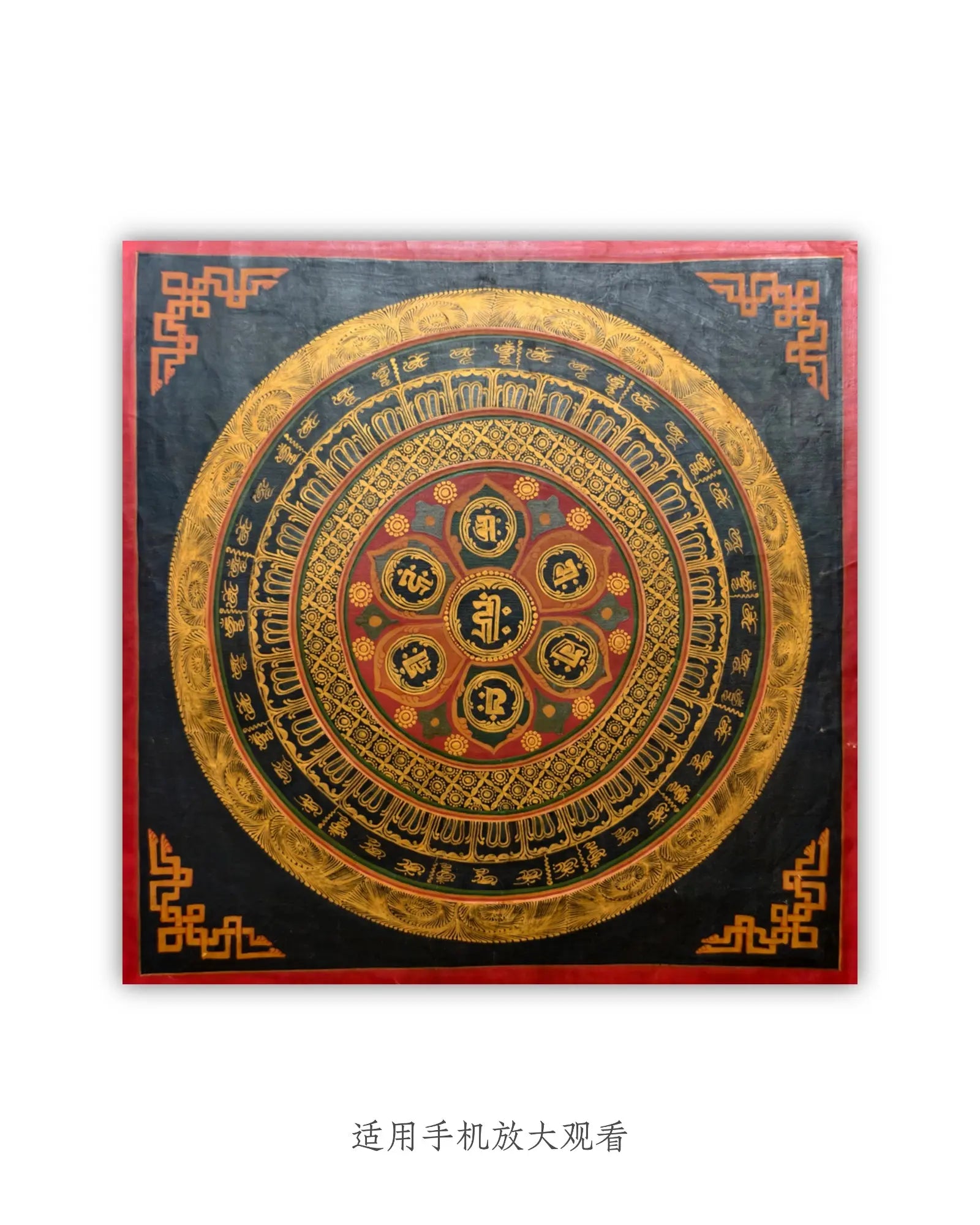 19世纪古董曼陀罗坛城唐卡7号:六字真言咒轮坛城